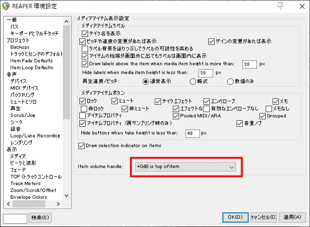 REAPER7でもアイテムの上を掴んでアイテムの音量調節が出来るようにするには